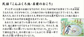 | 民話「こんぶくろ池・名前のおこり」 | 柏のむかしばなし (柏市観光協会ホームページより) |